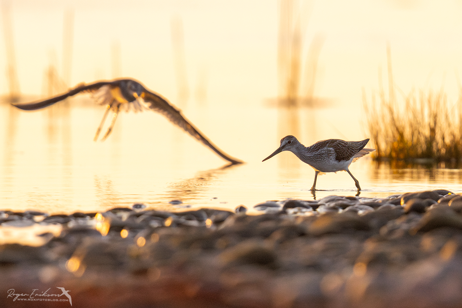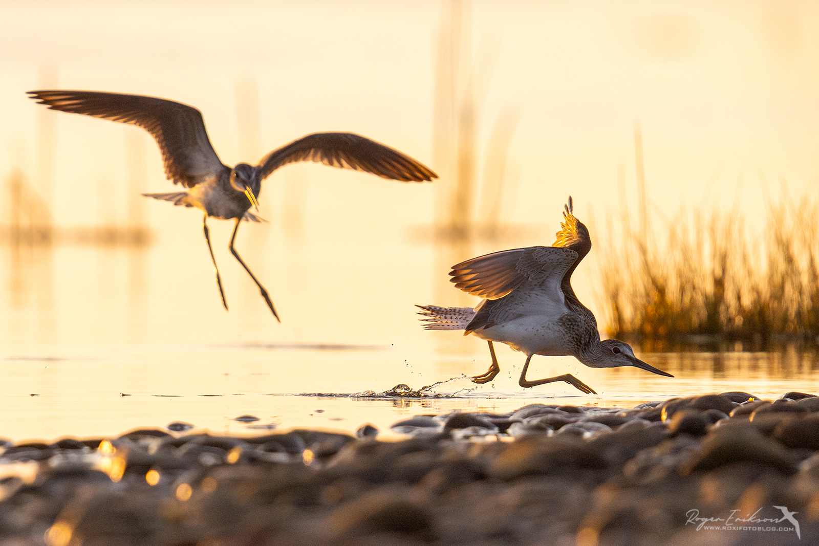 Ühtäkki aga sirutas tagumine lind (arvatavasti siis isaslind) oma tiivad ning hakkas mu poole lendama, samal ajal jalgadega vastu vett plaksutades. Alguses ei saanud arugi, mis toimub, kuid koheselt sai selgeks, et ta oli oma “naise” kaitseks välja astunud ning minule nähtamatus kohas olnud konkurenti peletama asunud. Mittesoovitud lind panigi jubeda pladinaga plehku. Ma ei jõudnud eriti seal reageeridagi, kõik käis väga kähku. Ehk tagantjärgi vaadates oleks võinud seesama isane hoopis peategelasena fookuses olla, aga ma sattusin hoopis põgeneva linnu peale. Oli mis oli, alati kõik ei õnnestugi :).