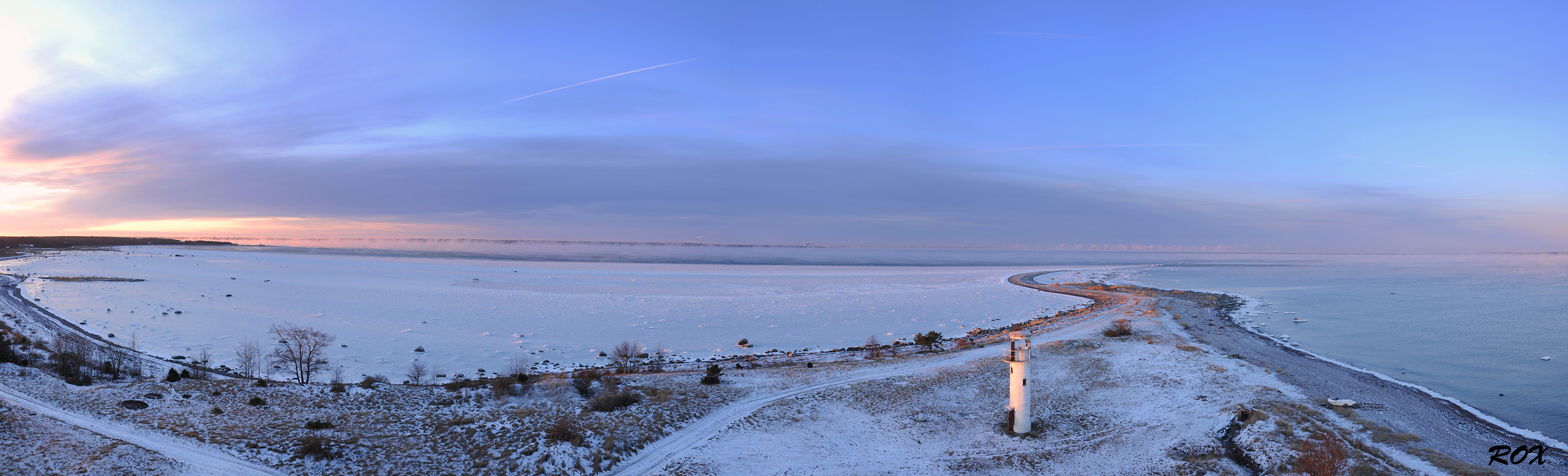 Ühel külmal talvel, 2009 detsembris sai TQNN-iga käidud Neeme poolsaarel hommikut vastu võtmas. Taevas oli imeline, külmakraade ca 23 kandis. Meri oli veel soe ning auras. Ühesõnaga pildimaterjali oli kuhjaga. Siiski ei piisanud mulle madalast võttenurgast ning otsustasin ronida vana vaatetorni otsa. Tegelikult tagant- järgi mõeldes oli see vägagi ohtlik, kuna poole torni pealt lõppesid sõna otsees mõttes ära igasugused astmed ning ronima pidi vaid jäänuste peal. Jah…täna ma enam sinna ronida ei julgeks :). Üldiselt oli vaade lummav. Kahjuks tegi olukorra keerulisemaks tugev tuul. Kui maas oli juba ilma tuuleta 23 miinust, siis üleval olles nõrga tuule käes tundus see -35 olevat…Ehk pidasin seal ca 10min vaid vastu…õnneks piisavalt, et sain sealt ühe kena panoraami tehtud.