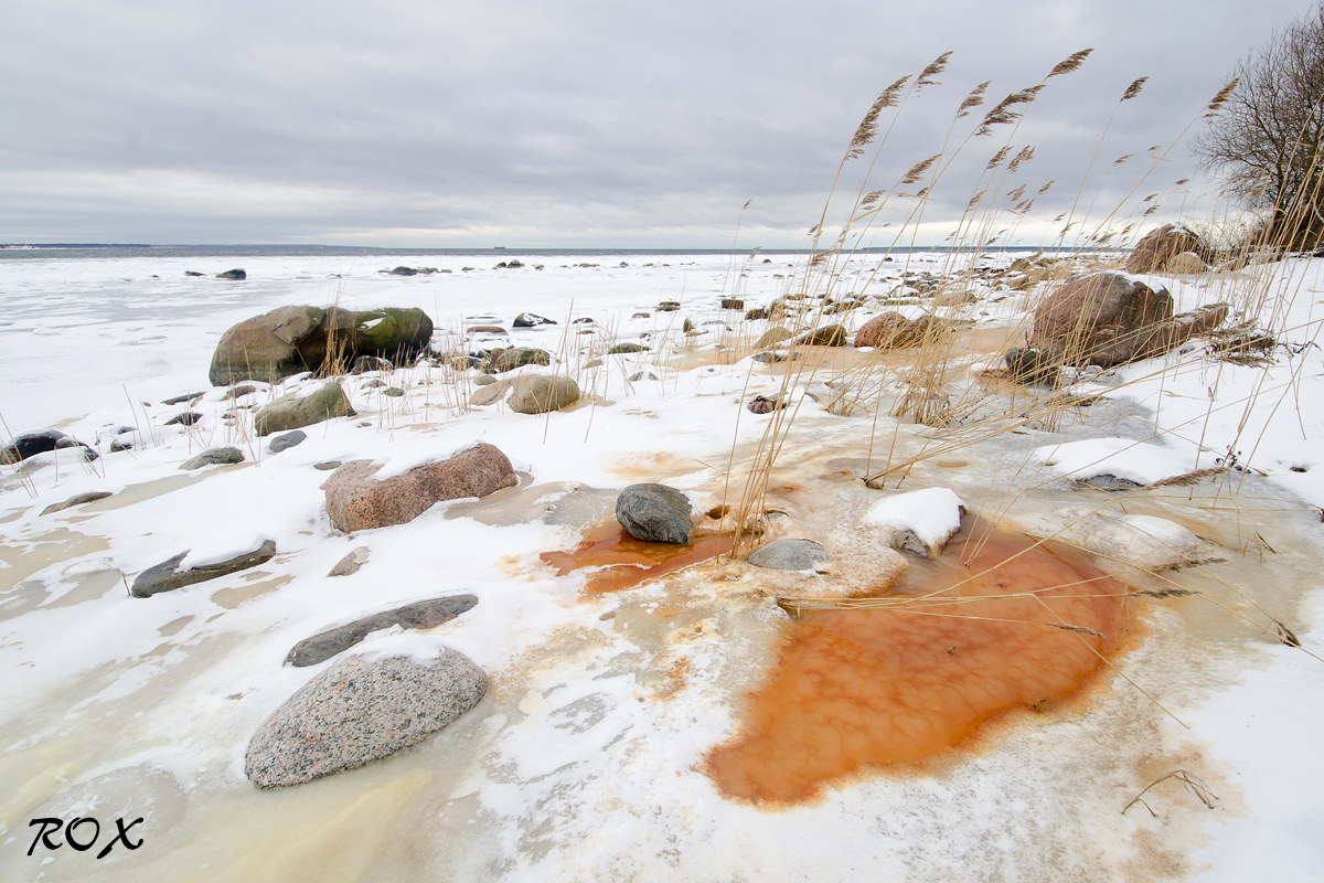 Veel üks pilt rannalt, kus adru ja vetikad on värvinud valget rannariba pisut kirkamaks.