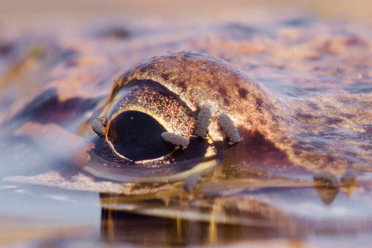 Konnasid on sel kevadel saanud juba üksjagu pildistada, iga külje pealt :). Sellest on saanud kui iga-kevadine traditsioon. Siiski ei ole kõik konnapildid sarnased, erinevad nad just pisidetailide poolest. Tänane pilt üllatas mind ennastki, mida ma tegelikult kohapeal ei märganudki. Vees oleval konnal tundus olevat silma ümbruses mingi sodi peal, kuid kodus uurides nägin, et see pole lihtsalt sodi. Seal toimetasid omakorda veelgi väiksemad elusolendid, kes konna pinnalt omakorda midagi süüa leidsid. See, mida meie oma silmaga igapäevaselt näeme, on tegelikult ikkagi ääretult vähene. Seepärast on mind makro-pildistamine aina enam ja enam huvitama hakanud, kuna seeläbi on võimalik näha palju enamat, kui algselt tundub.