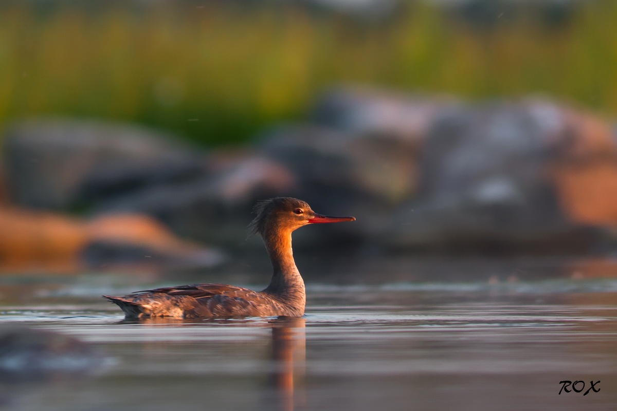 Targemad mehed on öelnud, et ole looduses 30min liikumatult ja vaikselt ühe koha peal ja loodus tuleb ise su juurde. Siiani on see väide vähemasti minu puhul paika pidanud. Vähemasti tol õhtul oli ääretult mõnus ja vaikne ilm, päike hakkas loojuma. Vedelesin mere ääres veepiiril kivide vahel ning püüdsin pildistada kivil tukkuvat Rohukosklat. Sain mõned pildid tehtud, kui lind lahkus. Jäin sinna siiski pikemaks vedelema ning kivide vahelt hakkas välja ujuma erinevaid linde :). Mõni kaugemal, mõni päris lähedal. Tänasel pildil kujutletud Rohukoskla emaslind ei pannud mind alguses tähelegi, mistõttu sai teha mõned kaunid kaadrid, kus viimased päikesekiired mõnusalt linnu peale ulatusid.