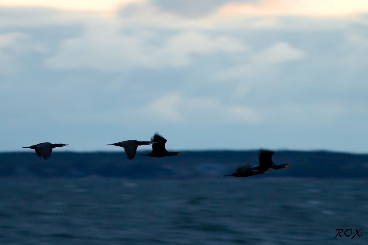 Kormoranid lennus. Pilt tehtud 20min enne päikesetõusu, septembri lõpus.