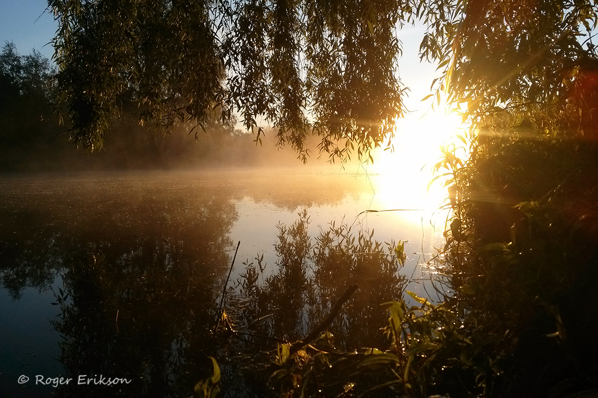Täna hommikul oli suve kohta harjumatult külm, vaid +4*C. Sättisin end põikesetõusuks liikuma ühe kodukandi tiigi äärde, kus olin silmanud erinevaid linnuliike. Just viimasel ajal olen sealt mööda sõites näinud Tiigikana, ehk Taita. See lind sai ka tänaseks eesmärgiks võetud. Olles varem seal tiigi ääres olnud ning jälginud Sarvikpüti tegemisi, oli teada, kus sai nö varitsusse asuda. Lebasin 1,5h ja ei midagi ega kedagi. Mõni üksik lind siristas. Õhk oli nii külm, et tiik auras korralikult. Kui päikesekiired uduni jõudsid, oli vaatepilt muidugi lummav. Kuna kaasas oli vaid teleobje, tegin telefoniga ühe kaadri ka sellest kaunist hetkest :).