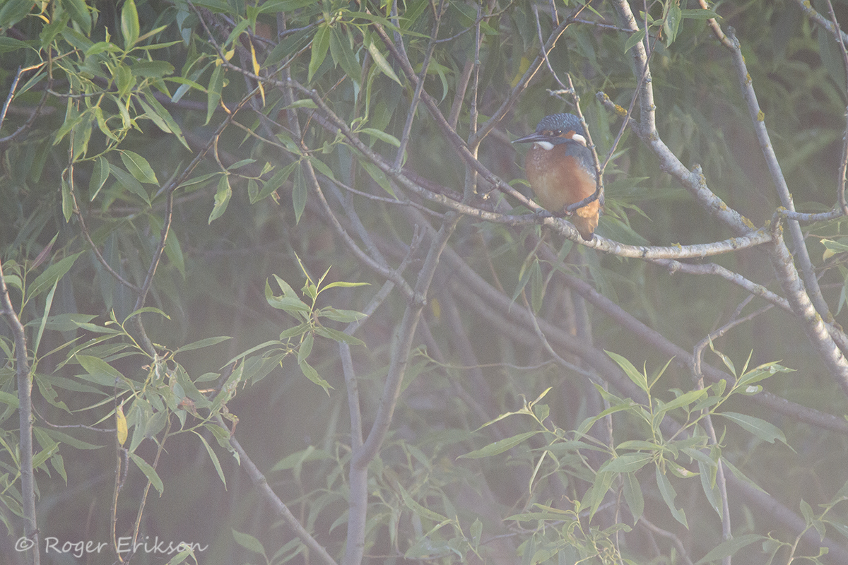 Kuid hommikuga võib siiski rahule jääda. Üllatuskülalisena saabus mu vaatevälja meie käesoleva aasta aastalinnuks nimetatud Jäälind. Ja kohas, kus teda kõige vähem üldse oodata oskasin 🙂 !!! Kui aus olla, siis oli see esmakordne nii lähedane kohtumine temaga. Alguses lendas ta mulle täpselt pea kohale, umbes 2-3m kõrgusele puuoksale, kala suus. Natuke madistas seal, tagus kalakest vastu puuoksa. Seepeale tunnetas ilmselt, et pole üksi ja lendas vastaskaldasse. Siis proovisin tast ka pilti saada. Läbi udu oli see muidugi taas keeruline ülesanne…udu oli kohati päris paks. Kuid olen õnnelik, et sellisest olukorrast midagi jäädvustatud sain :). Kuid jällegi peaks mainima, et looduses võid alati kohata kedagi erilist, ette planeerimata. See teebki selle hobi ääretult põnevaks ;).