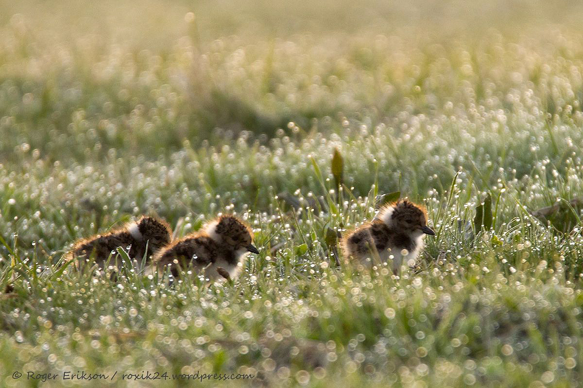 Ühel Mai varahommikul läksin päikesetõusu eel väiksele ringkäigule oma kodukoha lähistel. See oli just see aeg, kus Kiivitajal oli tibude koorumise aeg. Minu tähelepanu pälvis keskmisest julgem Kiivitaja, kes andis selgelt mõista, et ta pole seal üksi. Nii olidki 3 väikest sulepalli sealsamas rohu sees peidus. Viskasin korra kastese põllu peale pikali ja olin liikumatult. Mingi aja möödudes hakkasid tibukesed liikuma, sellest hetkest ka tänane pilt. Hiljem autosse tagasi hiilinud, jälgisin eemalt, et õnneks peale minu “külastust” said nad turvaliselt ema juurde tagasi :). Nii et lõpp hea, kõik hea.