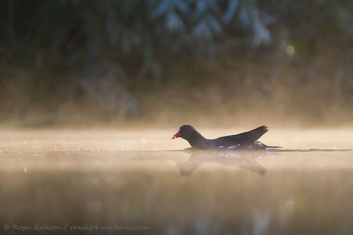 Kui varasemalt olen käinud ühe kodukandi tiigi ääres passimas Tiigikana ehk Tait-u, ja tulnud sealt tagas tühjade “kätega”, siis sel esmaspäeval läks teisiti. Sain selle linnu pildile, kül mitte väga lähedalt, kuid see-eest kaunis keskkonnas ja kuldse udu sees :). Lõppkokkuvõttes oli tulemus isegi nauditavam, kui algselt arvasin. Tait kiirustas oma järeltulija juurde, midagi suus hoides. Hiljem kodus nägin, et tal oli noka vahel väike kalake :).