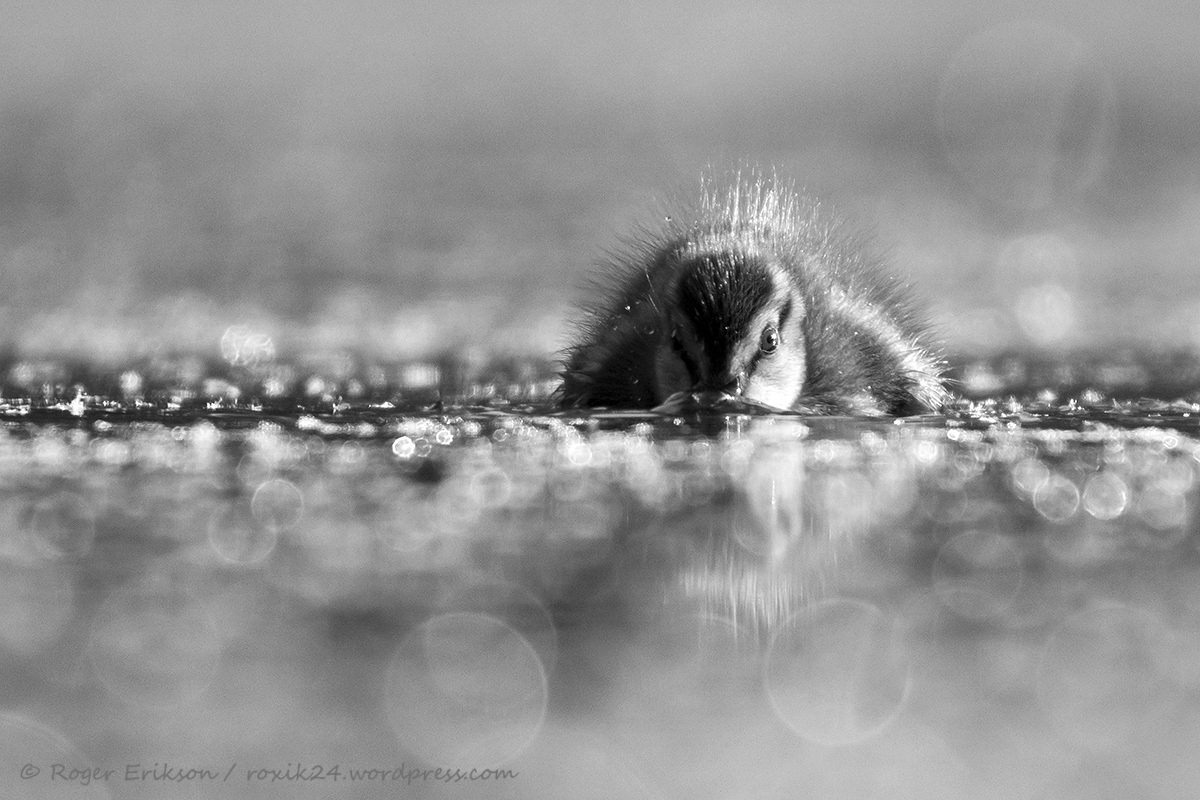 Üks must-valge pildi katsetus. Noor sinikael-part otsimas toitu pärlimerest :). Juuni 2014.
