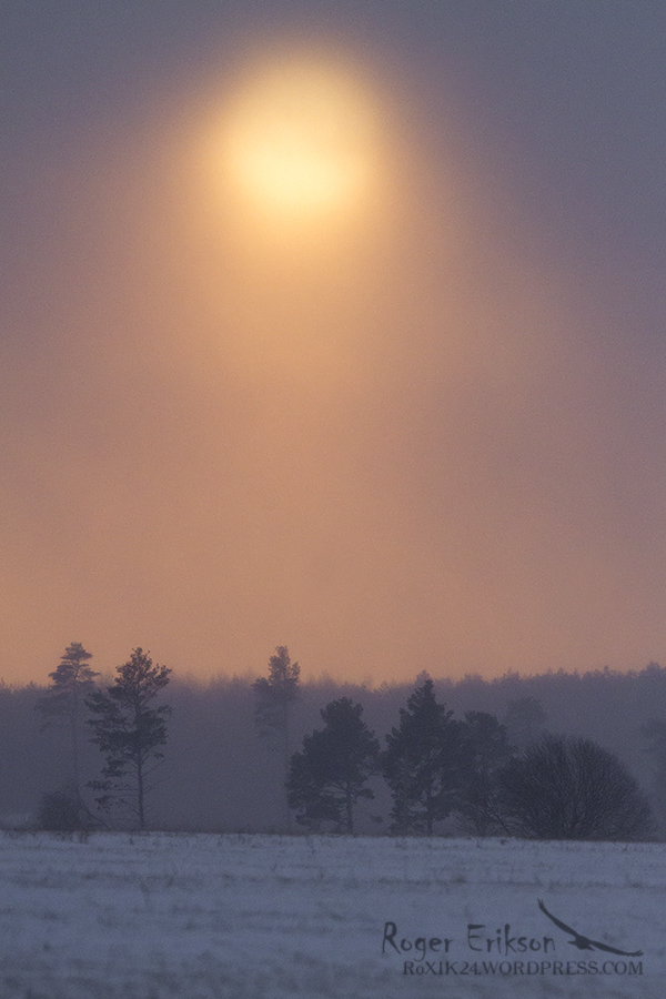 Vahelduseks linnupiltidele taas üks maastikupilt. Läheb kenasti ka tänase lumise ilmaga kokku. Pilt on muidugi tehtud 2014a detsembri lõpus, kui lähenev lumetorm päikese endasse neelas. 1min pärast enam päikest näha polnud. Ida-Virumaal.