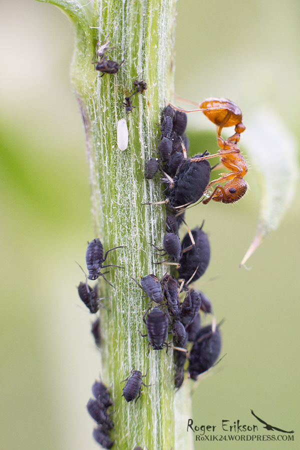 Ühel päeval, kui makrotama sai mindud, märkasin üht takja vart, mis oli kahlaselt must / tume. Kui lähemalt uurisin, siis paistsid sealt igas suuruses lehetäid hoopis vastu. Rohkemat põnevust pakkusid aga sipelgad, kes mingit asja nende lehetäidega ajasid. Ei saanudki lõpuni aru, kas sipelgad sõid neid või oli neil mingi muu kavatsus. Igal juhul jäägu seda juttu illustreerima 2 fotot, millest üks nö inimese silma läbi nähtud / tehtud ja teine juba makro võimekust pakkunud objektiiviga ja “pisut” lähemalt tehtud.