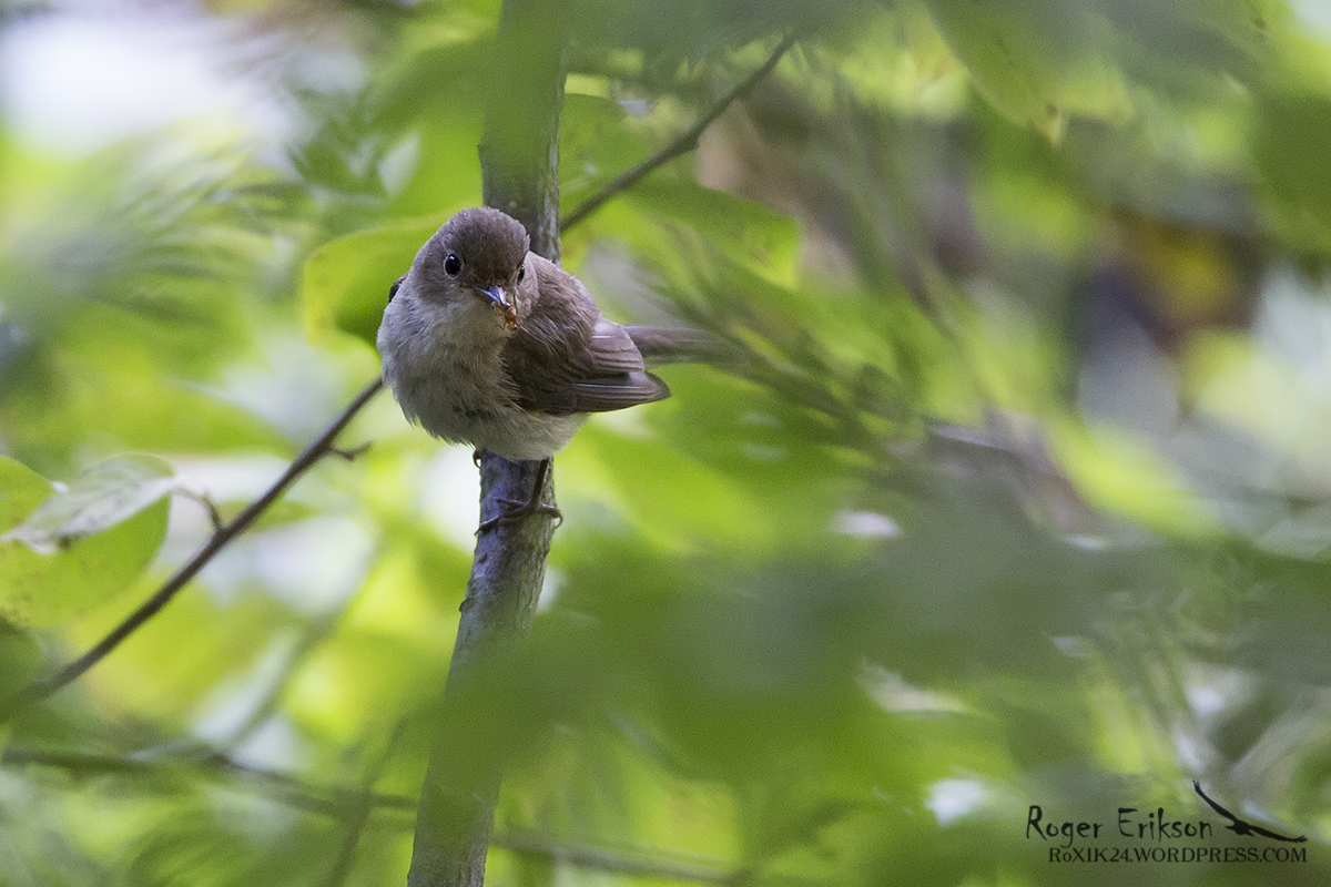 Ja siin emaslind, kärbes noka vahel.