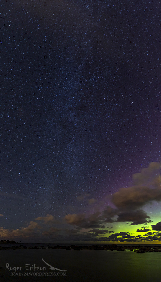 Esimesed katsetused tükikest linnuteed pildile saada. Oma boonuse andsid pilti ka virmalised :).