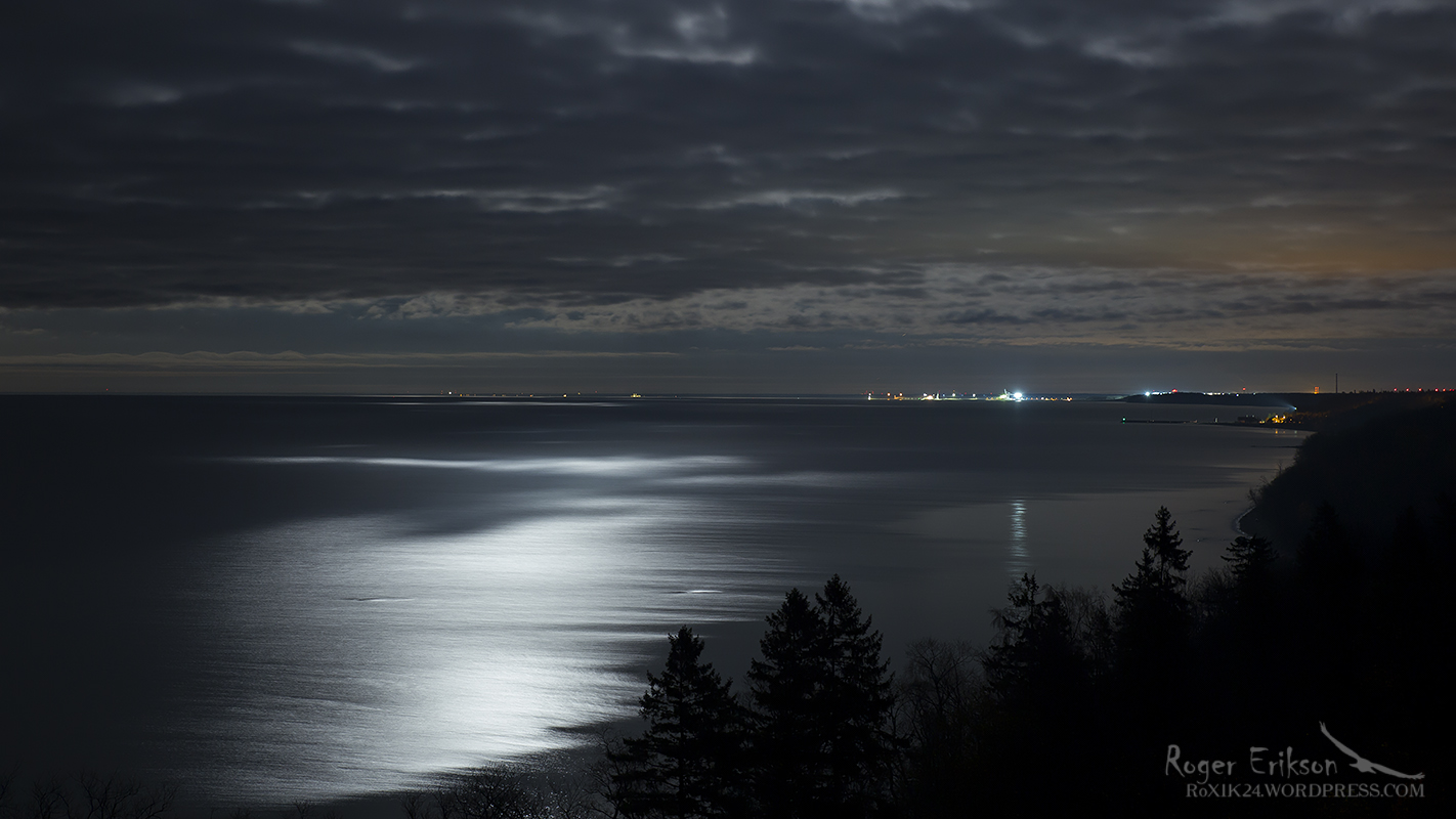 See on üks lemmikvaateid Ida-Virumaal, koht kus ikka ja jälle pildistamas käin. Erinevad ilmad ja aasta-ajad teevad erinevad pildid. Täna näidatav pilt on seni tehtust vast üks lemmikumaid. Kuu oli taevas, kuid pilvemass sõitis talle pidevalt ette. Just läbi pilvede osaliselt merele kumav kuu tegigi olukorra eriliseks, mistõttu sai erinevaid pilte katsetatud. Õnnestunuim ka täna näitamiseks.
