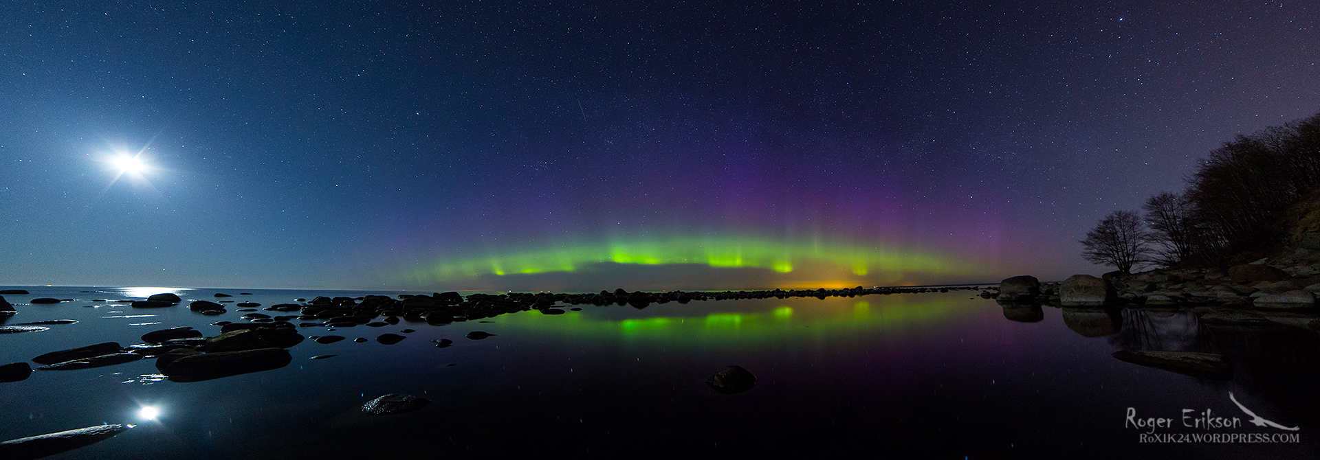 Eile leidsin aasta alguses tehtud piltide hulgast ühe laheda panoraami, kuhu isegi kuu sisse mahtus :). Tavaliselt valgustab kuu nii palju taevast, et virmalised nii võimsad ja kaunid ei näigi. Kuid kui on ikka pime aeg ja virmalised on erksad, ei jää nad nägemata :). Pilt jätab tehniliselt küll pisut soovida, kuid ega pimedates tingimustes igast olukorrast saagi alati selliseid kaadreid, mida tarkvara ka ideaalselt kokku panna suudaks :D. Vähemasti tean, et tol hetkel võtsin olukorrast maksimumi, katsetades ülilainurk objektiiviga panoraami teha :). Fotograafid saavad ilmselt aru, mida see tähendab ;).