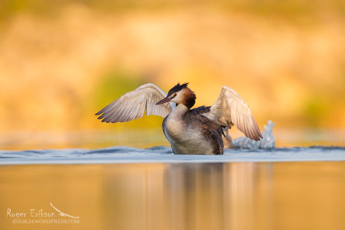 Peale toidu tarnimist järglasele, tegi Tuttpüti vanalind väikse tiivasirutuse. Noorik jäi kalaga veel selja taha mässama :). Juuli 2016.