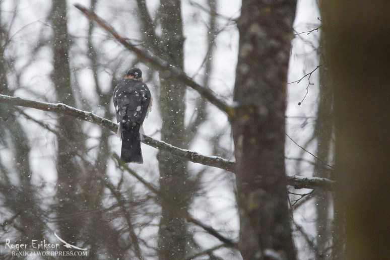 Nagu ikka looduses, ei kipu sa alati kõike nägema, kuid sind näevad paljud. Lindudega on selline huvitav asi, et kui nad suudavad märkamatuks jääda, ei pruugi isegi arad linnud põgeneda, vaid jäävad oma varitsuspaika passima. Antud linnule kõndisin otse peale, nägemata, et ta mul päris lähedal puuoksal jahti pidas. Loomulikult päris lähedale jõudes pani ta ajama, mispeale ma talle metsa järgnesin. Paks lumesadu ja hea kaitsevärvus tegid aga linnu edasise tabamise suhteliselt võimatuks. Siiski leidsin ta lõpuks üles ning kui ka kaamera ta lõpuks ära tuvastas ja fookusesse sai, sain oma pildikese kirja :). Veebruar 2017.