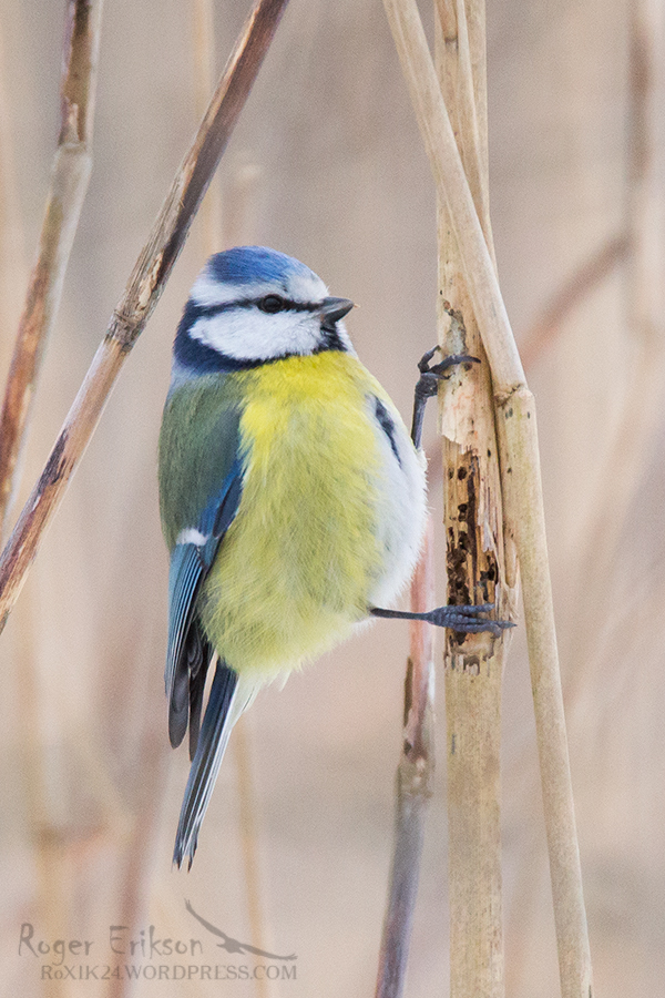 Talvel ja ka tegelikult juba sügisel võib kohata mere ääres kõrkjates krabistavaid sinitihaseid. Vaiksel päeval on selline krõbistamine eriti valjusti ja laialt kuulda. Mida need sinitihased seal siis krabistavad? Eks ikka otsivad süüa. Nagu ka tänaselt pildilt näha, nokivad nad kõrkja koore lahti mistõttu avaneb ligipääs toidule. Peale seda nokitakse kõik hea ja parem sealt välja :).