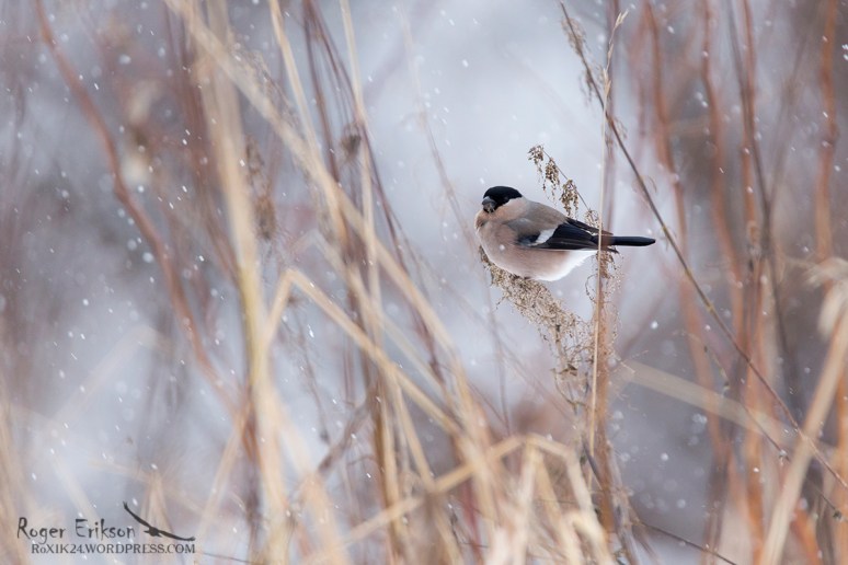 Aastake tagasi tehtud pilt: emane leevike just alanud lumesaju taustal kuivanud nõgesel turnimas. Detsember 2016.