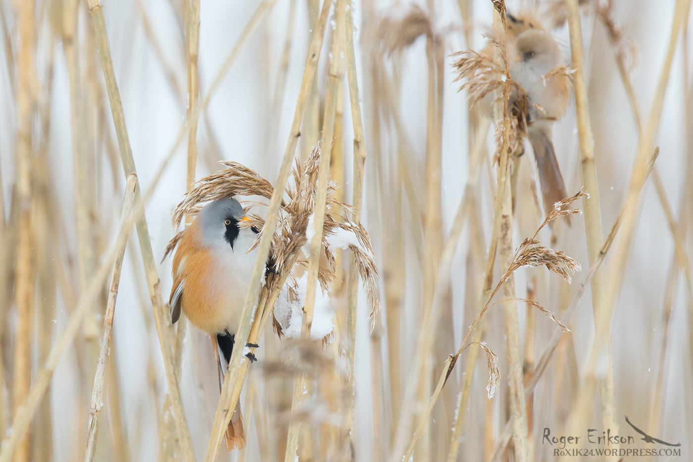 Pealkiri ja pildi sisu võivad olla pisut eksitavad, kuid pilt on reaalsuses tehtud nädal tagasi Aprilli alguses. Keset kevadet tuli korraks lihtsalt pisut lund maha :). Tegelikult on sel aastal saanud roohabekatega mitmeid lahedaid tunde koos veeta. Nädalapäevad tagasi pakkusid nad mulle taas uut elamust. Kehva ilma tõttu võitlesin kogu päeva jooksul niiskuse ja märgade tingimustega. Mõned head momendid magasingi just seetõttu maha, et oli tarvis leida enda küljest mõnda kuiva kohta, millega objektiivi esiklaasi pisut kuivemaks saaks. Kuid kokkuvõtteks oli väga tore ja pildirohke päev. Seekordsele pildile mahtus vahelduseks 2 lindu- isane eespool, emane pisut maskeeritumalt tagapool toimetamas. Taaskord pidin tõdema, et roohabekas on ikka üks erakordselt kaunis lind :). Aprill 2018.