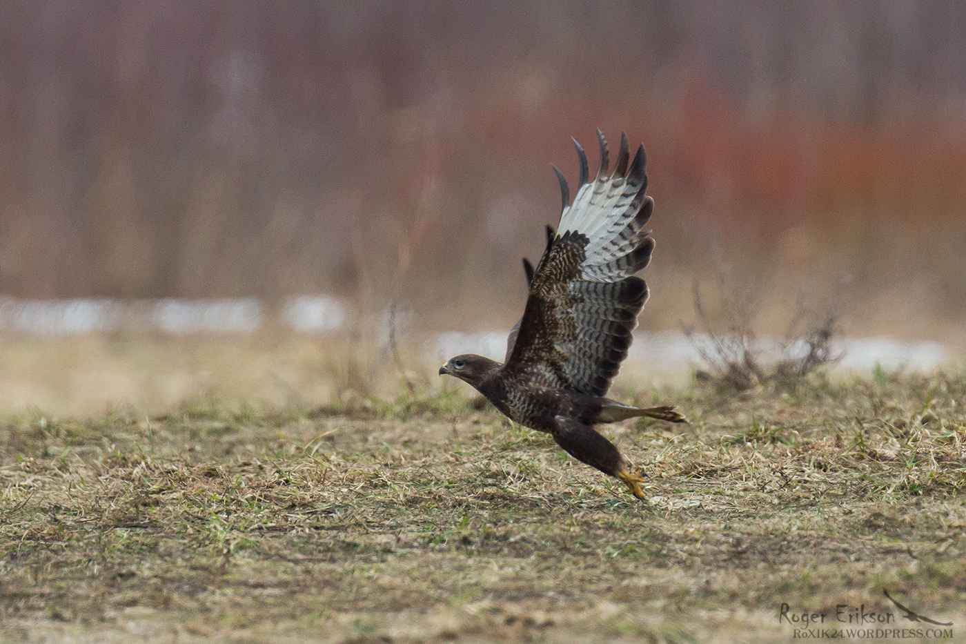 Põllu ääres istuv hiireviu on üldiselt üsna ärev seisma jäävate autode osas. Nii oli ka sel korral, kuid vahe oli selles, et seekord sai ka mingi pildi kätte :). Märts 2019.
