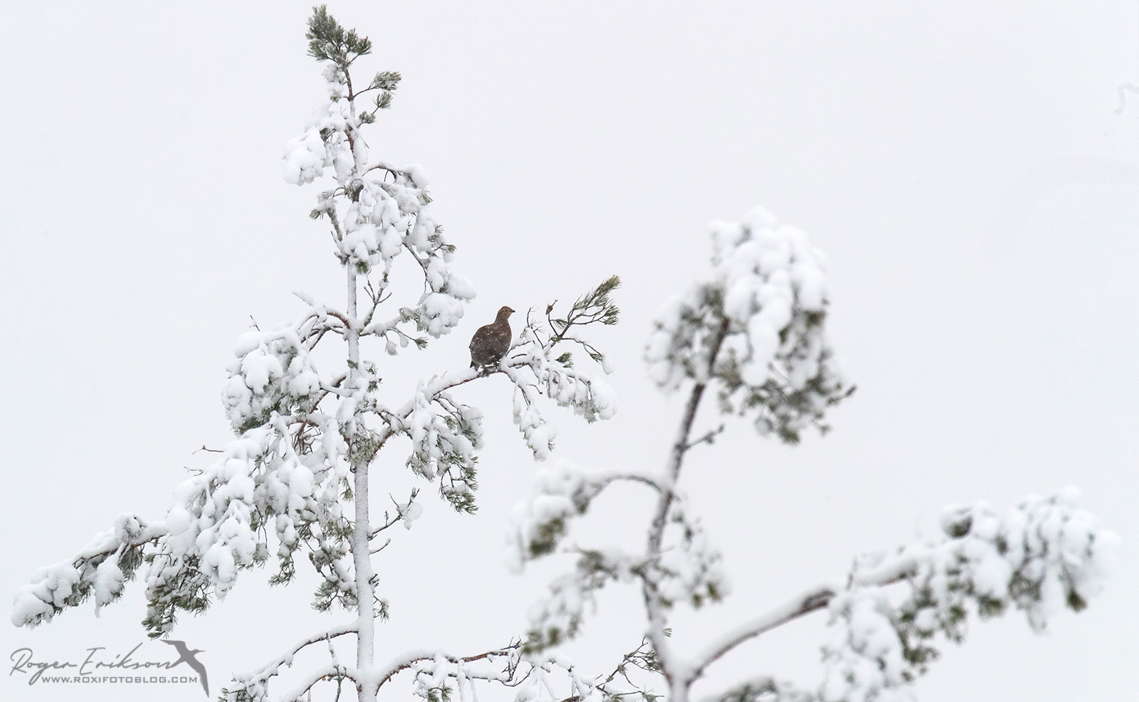 Teder lumises keskkonnas. Allpool oli ka isane, kes aplalt männiokkaid nokkis. Jaanuar 2021.