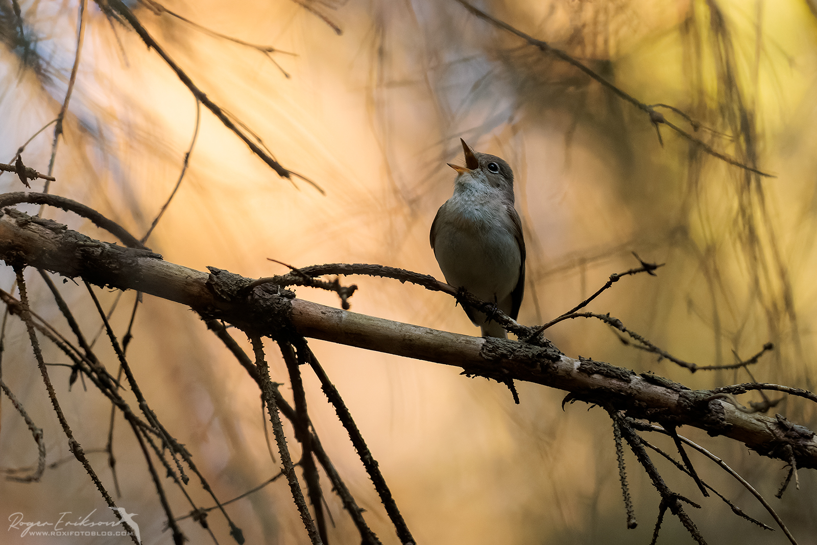 Nad on ägedad linnud, kes sind ise uudistama tulevad. Teine asi, mida täheldanud olen, on nende harjumus lennata pigem risusest kohast eemale, puhastele okstele laulma. Sellised esteedid fotograafidele meeldivad :). Kui taustale pisut hommikupäikese värve sättida, võib tulemuseks täitsa meelepärase momendi jäädvustada. Mai 2023.
