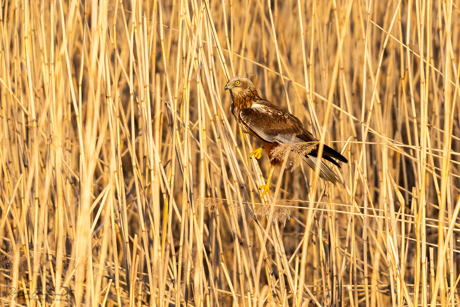 Mu soov oli näha kevadele kohast tuttpüttide paaritumismängu, kui linnud mõlemad graatsiliselt vastastikku oma päid vibutavad ja oma kohevaks aetud sulestikku üksteisele lehvitavad. Seda hetke oodates tuli aga ühtäkki üks roo-loorkull mu vaatevälja. Liugles algselt kaugemal, kuid lähemale jõudes keeras roostiku peale ning ärgitas lendu kõik väiksemad linnud. Lõpuks maandus naljakalt roostiku peale passima. Pole kunagi roo-loorkulli selliselt passimas näinud. Istus mõned minutid ja pani uuesti lendu. Hiljem tuli veel korraks tagasi, sukeldus roostiku sisse ja läks mingi kalaga minema. Selest hetkest liiga häid kaadreid ei saanud.