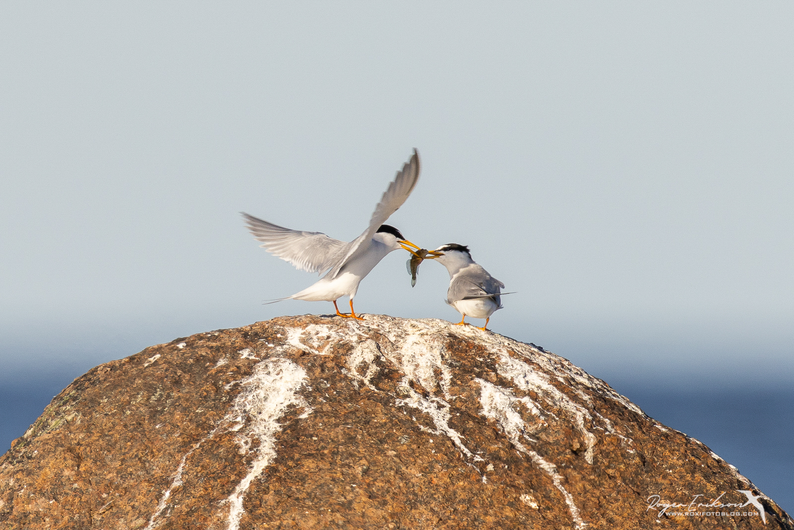 Väiketiire pole meie rannikul üldse palju, seetõttu pööran neile alati tähelepanu. On nad meie ranniku väikseimad tiirud, keda hinnatakse meil pesitsevat 150-300 paari. Peale mõnda aega jälgimist sai selgeks, et kala viiakse kaasale, kes eemal kivil jalga puhkas ning ootas, kuidas kallim talle kingitusi kohale transpordib :). Nad nii väiksed linnud, et ei pannud teda esmalt tähelegi, aga see kala-transport reetis. Siis saigi pisut enam sellele tegevusele keskendatud ning sellised momendid sealt mälukaardile salvestasin.