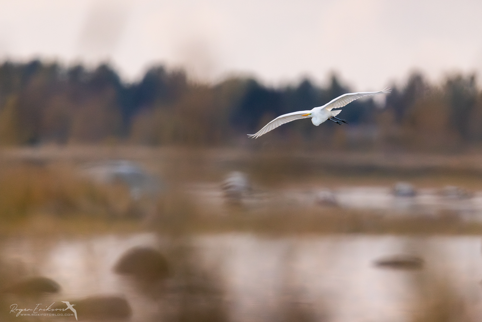 Mu tähelepanu oli sinna kohta lukustatud, kus teda viimati nägin. Mõne hetke pärast tuli lind lennuga minu poole. Vajutasin nupule ja ise veel mõtlesin, et mida ma nii hämaras ikka proovin lendavat jäälindu pildistada, et väga väike võimalus tema kiire lend pildile saada, aga vot endalegi üllatuseks sain :).