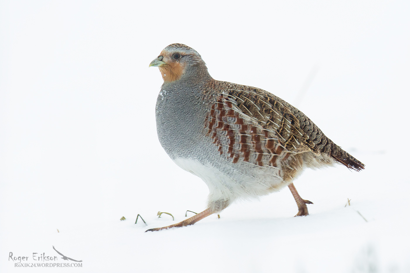 Nurmkanad on teada tuntud selle poolest, et nad pigem siblivad põldudel ringi ja ohu korral peidavad end lume sisse, kuid lendu minnakse alles siis, kui tajutakse suuremat ohtu. See kohtumine toimus mullu detsebri lõpul, mil ühel päeval kohtasin 3 erinevat ~10-pealist seltskonda, kes lumevaiba alt toitu nosisid. Pilt tehtud tegelikult liikuvast varjest, autost, imekombel mängis ka tee ja põllu vaheline kõrgus hästi kokku, mistõttu sai linde kadreerida parima võttenurgaga. Linnud olid oma tegevusega nii ametis, et lähim tegelane kõndis minust kuskil 8m pealt mööda, mis on tegelikult metsikuid linde arvestades ikka üsna lähedal :). Detsember 2018.