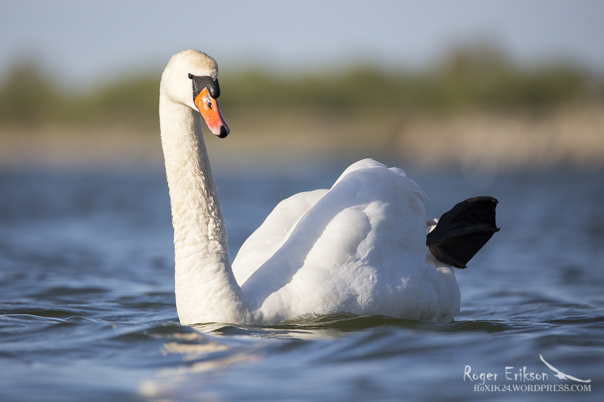 Kühmnokk-luik merel aerutamas ja kena ilma nautimas. Mai 2015.