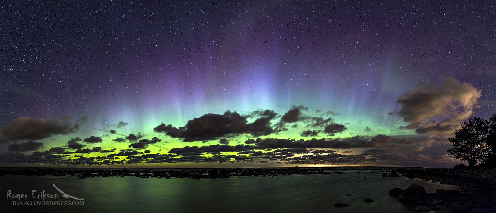 Eelmisest nädalavahetusest ehk 15-16. augusti ööst on veel mõningaid pilte näitamiseks. Katsetasin ka erinevaid panoraame teha. Üks ja vast parim nendest katsetustest on ka täna näitamiseks. Loodame, et lähiajal tuleb juba uut virmaliste materjali peale, ennustused ja Päikese aktiivsus seda vähemalt lubavad :).